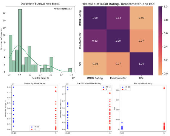 This project analyzes the profitability of Blumhouse Productions' low-budget horror films, focusing on production budgets, ROI, and factors like ratings and release years. Using Python for exploratory data analysis and data visualization, it uncovers key insights into budget allocation and box office performance.